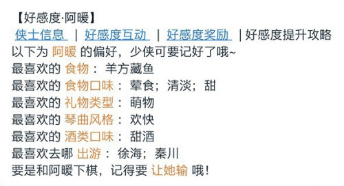 以上就是羊托游小编为你带来的《天涯明月刀手游》阿暖喜好物品介绍的全部内容,更多精彩活动资讯尽在羊托游手游网, 想知道更多热点游戏资讯的小伙伴欢迎点击关注收藏本网站哦。