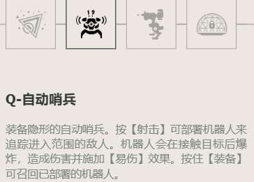 机器人会在接触目标后爆炸,造成伤害并施加【易伤】效果。按住【装备】可召回已部署的机器人。