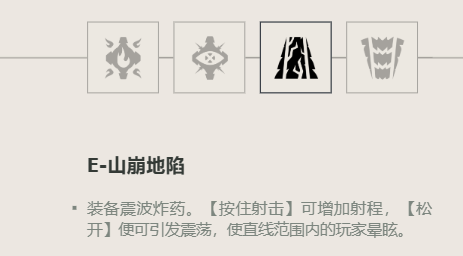 装备是一颗撼地弹。直接点击【攻击键】,就能呈大型锥状在所有地形上释放连锁地震。