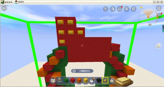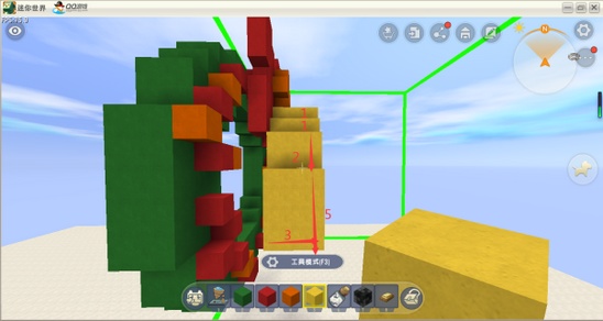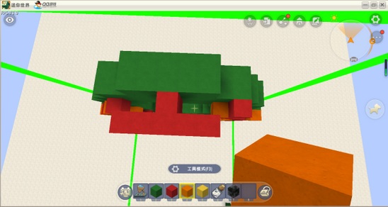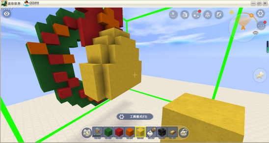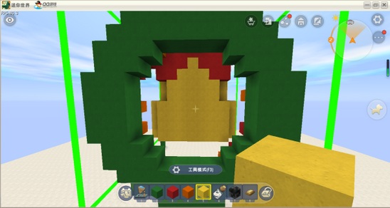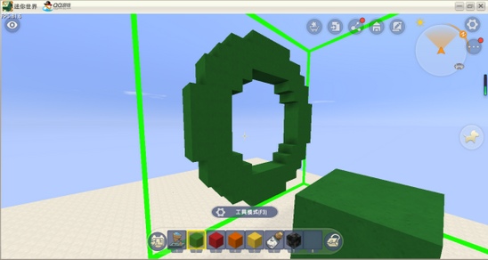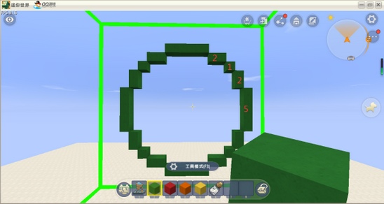 第一步,先把模型工作台放到地上,接着拿出绿色硬沙块制作花环主体,先做一个直径 11 格的圆形。