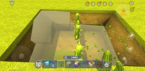 3、接下来第一步,用铲子挖出一个坑,往坑里填满水,然后在水中放置仙人掌。