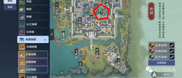 3、拿到锦鲤鱼饵后,就可以在合适的水域钓鱼,寻找并获取 5 条锦鲤,集齐 5 条锦鲤后,就能完成本次奇遇任务。