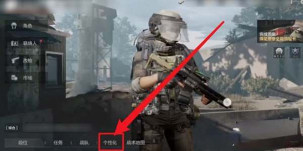 1、打开暗区突围,进入大厅,点击主页下方的【个性化】。