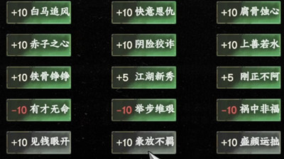 初始属性同样重要,非战斗属性如修养影响支线任务完成,生活技能如炼丹、缝纫助力制作道具。选择“腐骨蚀心”可增加10点毒术,配合高炼丹技能打造强力毒药;“刚正不阿”提升儒学,触发正派剧情,适合剧情导向玩家。