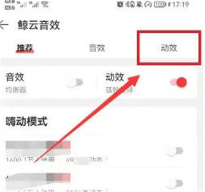 3、进入鲸云音效后,点击动效并关闭即可。