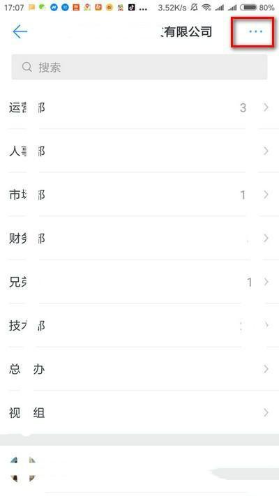 3、进入组织架构页面后,在该页面的右上角找到 “菜单” 按钮(通常为三个点或齿轮图标)并点击。