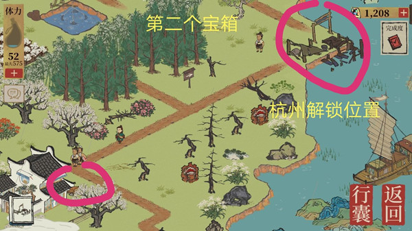 第二个宝箱:在杭州区域的解锁位置附近,看向该解锁位置的左边,即可找到这个宝箱。