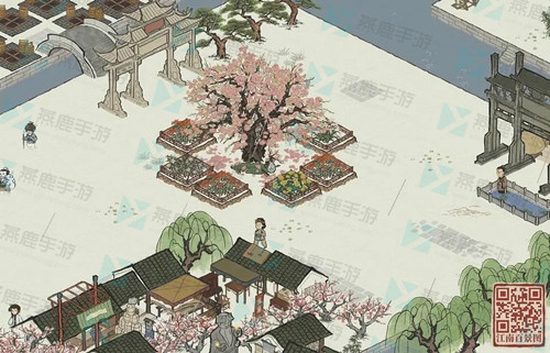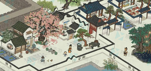 搭配四:把去年桃花摆件放在院子里,供张择端居住使用,相关的故事设定十分感人;还能让唐伯虎的住所与张择端相邻,这样两人出门都能看到花,互动感更强。