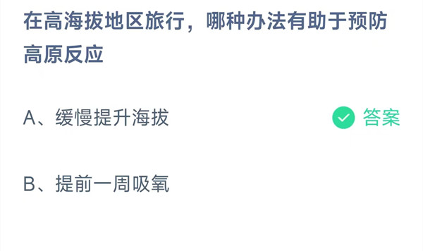 在高海拔地区旅行,哪种办法有助于预防高原反应?这是今天《支付宝》每日一题的问题,相信我们很多用户都很想知道这个问题的答案是什么?这么一个可以领取饲料的机会相信我们很多用户都不想错过,这里羊托游小编为你带来了2025《支付宝》10月1日每日一题最新答案介绍(1)的全部内容,喜欢的小伙伴欢迎点击进入看看吧。