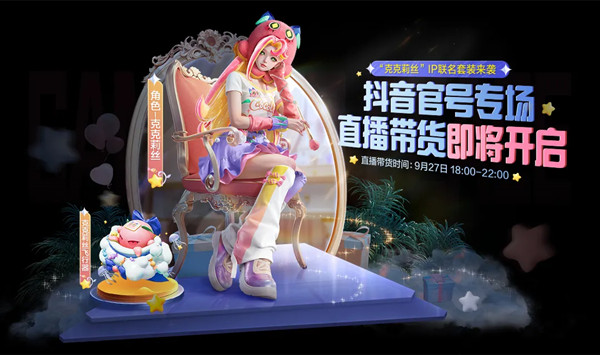 想拿下联名套装?锁定《和平精英》抖音官号!抖音官号专场直播带货活动将于9月27日18:00开启,还有互动环节攒期待,手慢无!首次启动1元福利等你解锁,夺宝限时开启,欢迎各位特种兵抽取独家新品“克克莉丝”IP联名系列道具。