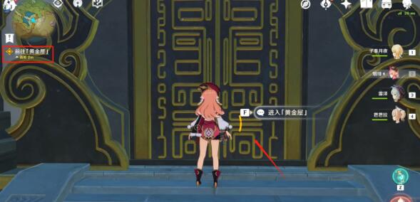 2、到达位置后,玩家需要进入 “黄金屋”—— 这是一个秘境;靠近秘境入口处进行交互操作,即可进入秘境内部。