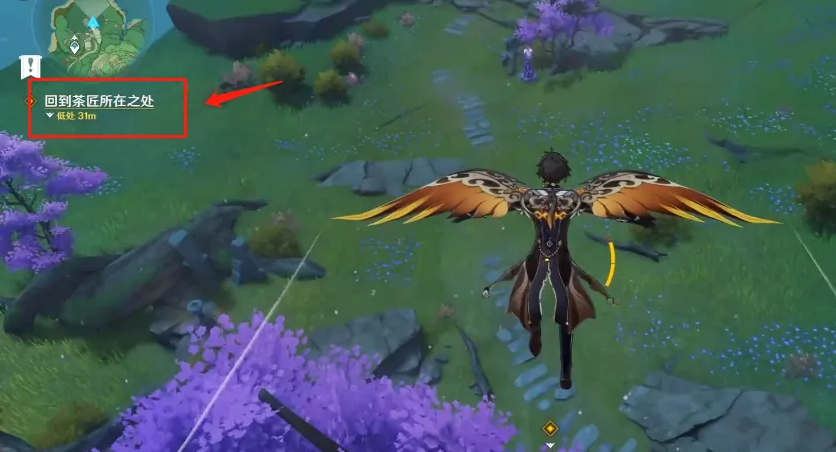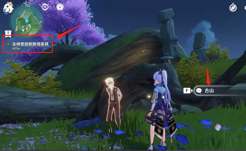 6、完成茶具获取后,从神里屋敷出发,重新返回之前见到古山的位置,此时古山的身影已经消散不见。