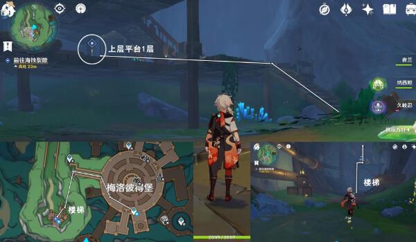 8、与格内薇芙对话后,接着沿着附近的楼梯向上攀爬,前往上层平台的 1 层区域。