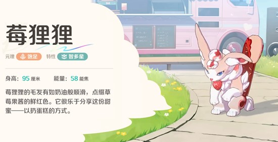 狐狸造型,奶油毛发搭配果酱花纹,身高95cm,能量58,属“饱足”类别,职业为智多星,推测擅长策略辅助与增益施加,是队伍中的功能型支援角色。