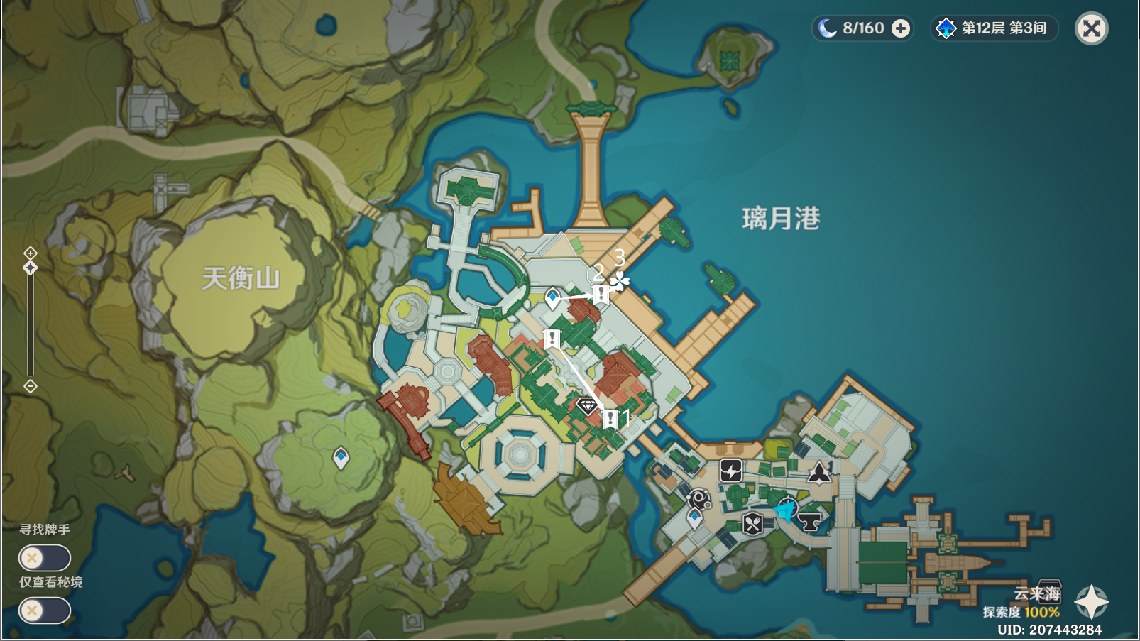 1、首先需要将信带给「飞云商会」的家丁:先传送到璃月港图中标注的锚点,再前往琉璃亭,在亭内与阿旭对话即可推进流程。