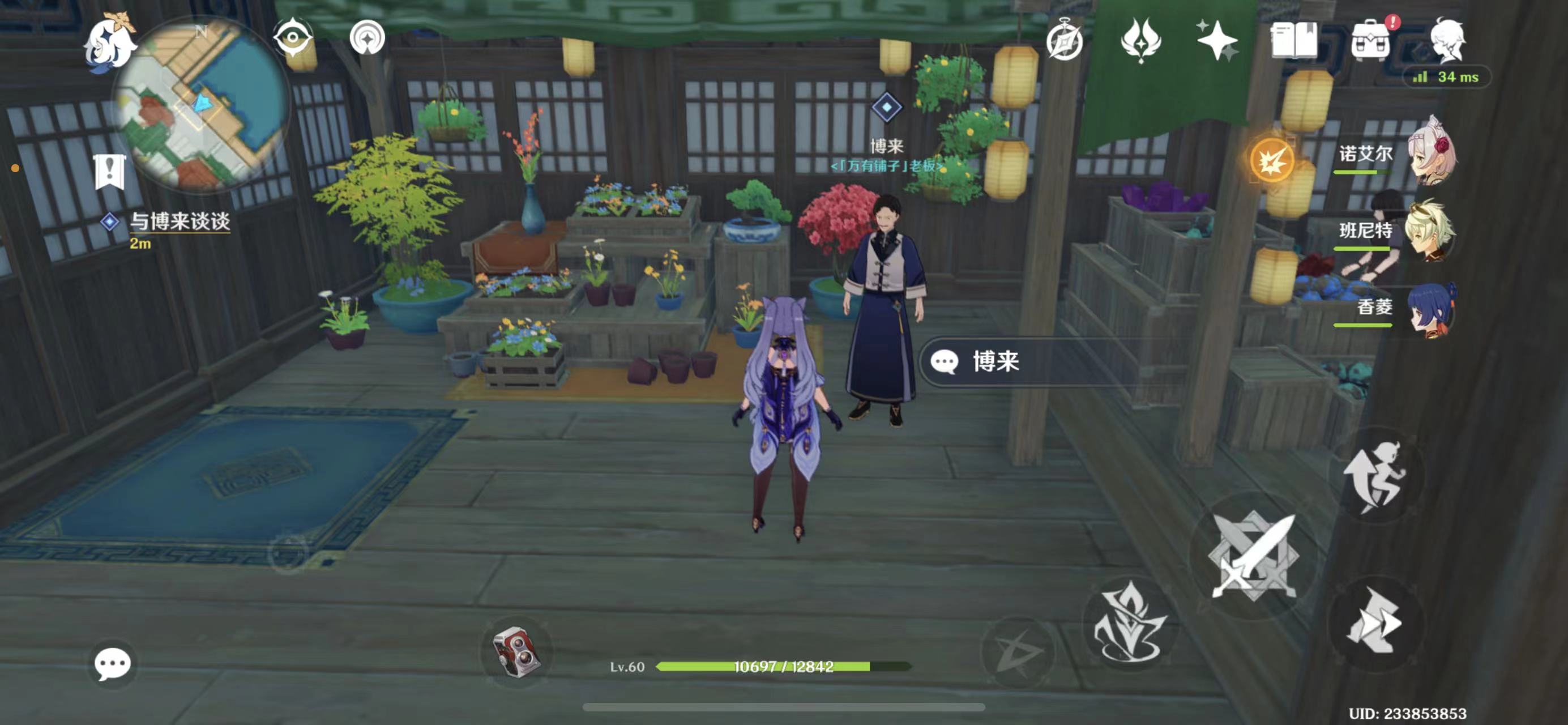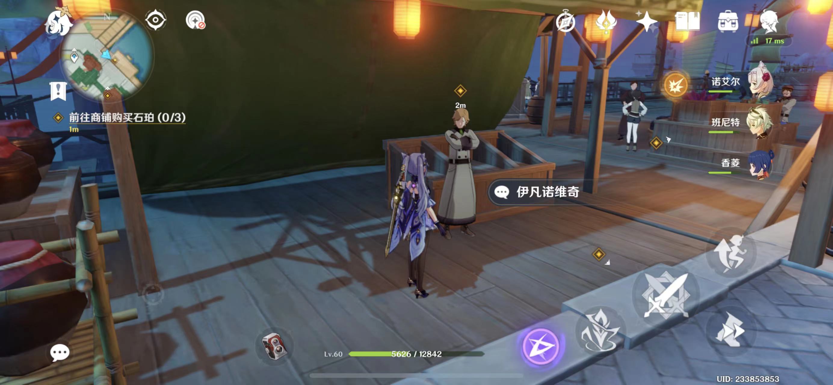2、接着前往商铺购买石珀(可参考商铺路线图):先往地图东南方向走,与路边的长顺对话;之后传送到璃月港图中标注的锚点,向地图东方走,先到一处商铺与伊凡诺维奇对话,再前往甲板下的商铺,与博来对话完成购买。