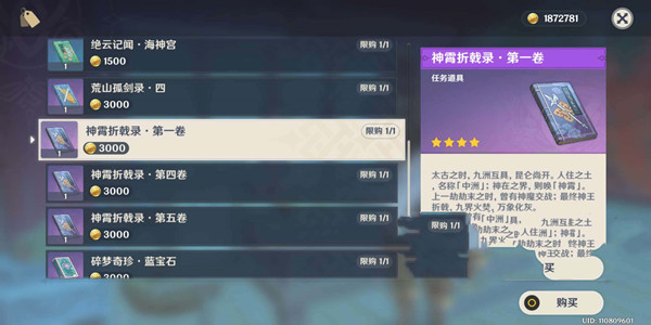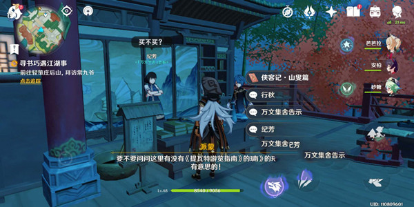 1、首先根据任务提示,前往万文集舍的三楼找到纪芳,与她对话后接取任务。在此过程中,还可以顺便在纪芳这里购买《神霄折戟录》,这款道具是解锁 “神霄狂言凌云霄” 成就的必需物品。