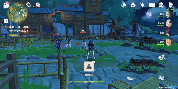 4、与行秋对话结束后,会有愚人众敌人来袭,共需击败三个怪物。建议优先攻击紫色服装的女性敌人,她被击败后,场上的虫子就会消失,后续再清理剩余敌人,就能完成任务。