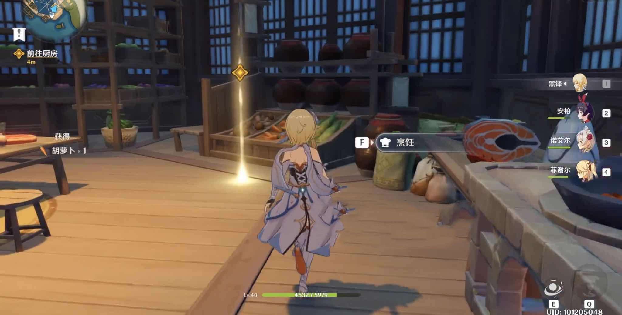5、前往之前找到的厨房,在厨房内找到地上的光点,点击光点触发下一步互动。