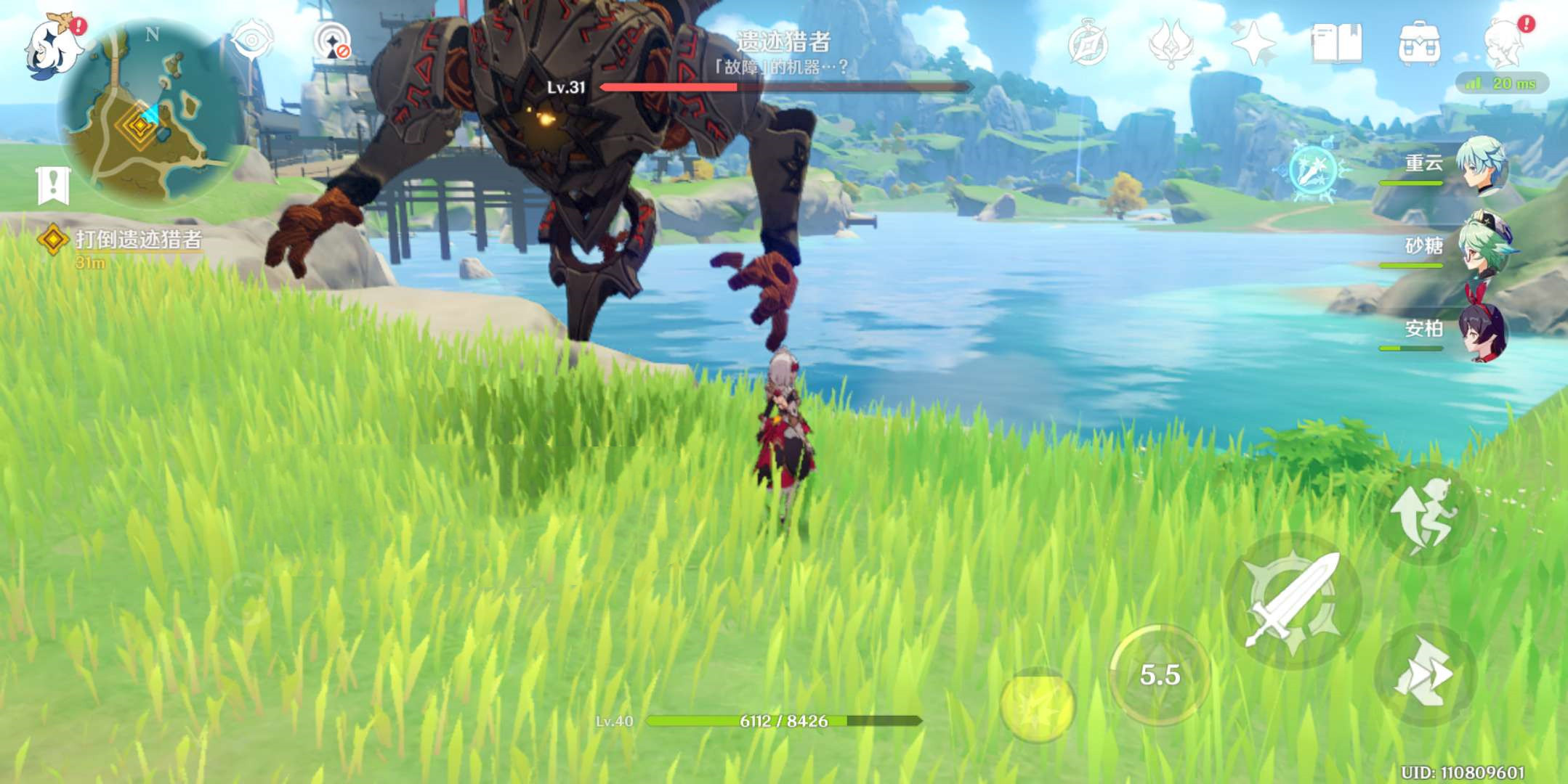 11、之后需要击败遗迹猎者,这个敌人的难度不算大,抗伤能力比较一般。当它飞到天上时,用射手类角色攻击;其他时间用大剑角色近身砍击即可,我当时就是用女仆角色将其击败的。