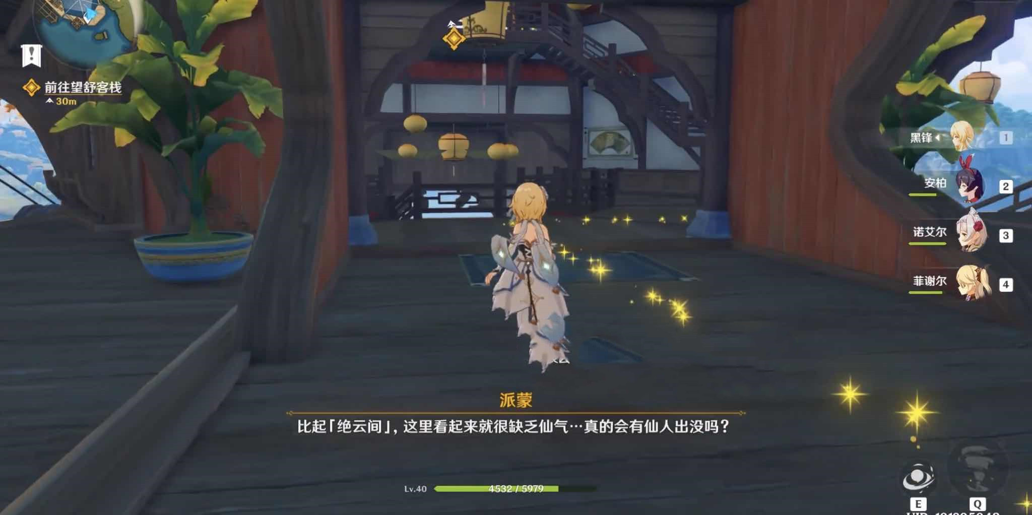 1、我们先传送到望舒客栈,抵达后根据任务标记的指引前往客栈顶楼,在顶楼找到魈并与其对话,触发后续任务。