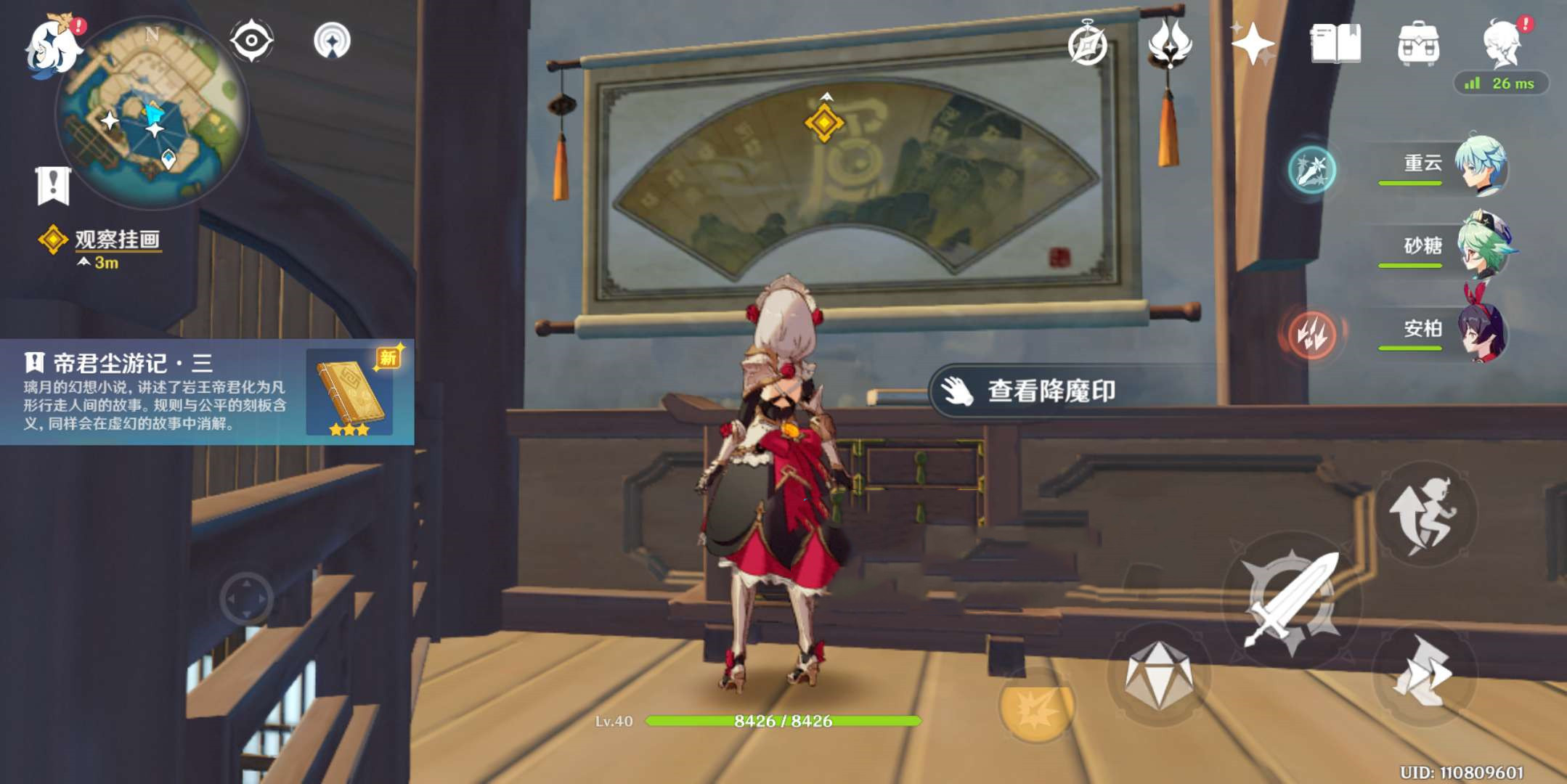 13、最后回到望舒客栈顶楼,找到魈并与其对话,即可完成整个任务。