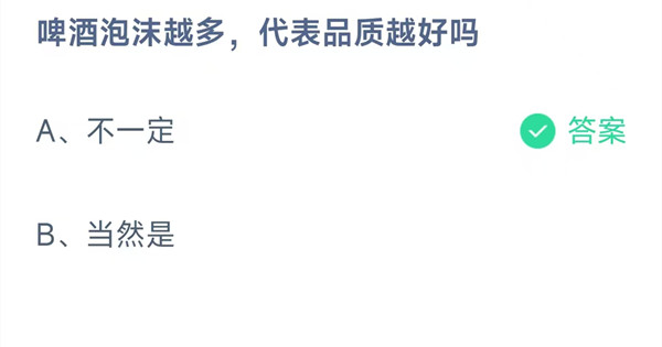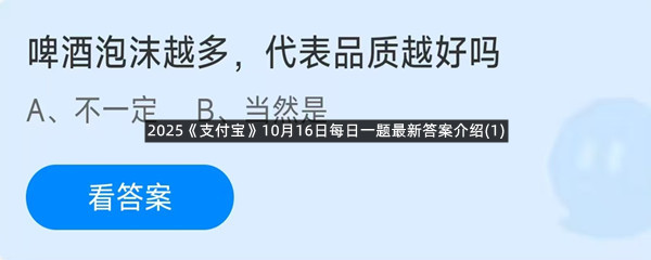 啤酒泡沫越多,代表品质越好吗?这是今天《支付宝》每日一题的问题,相信我们很多用户都很想知道这个问题的答案是什么?这么一个可以领取饲料的机会相信我们很多用户都不想错过,这里羊托游小编为你带来了2025《支付宝》10月16日每日一题最新答案介绍(1)的全部内容,喜欢的小伙伴欢迎点击进入看看吧。