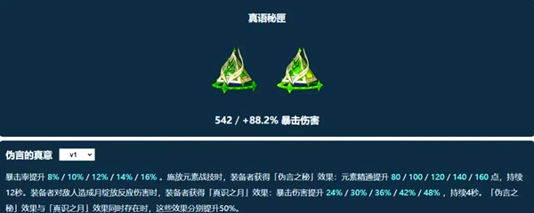 若「谎言的秘密」与「真理之月」两种效果同时生效,两种效果的加成数值都会额外提高 50%,进一步放大角色的输出能力。
