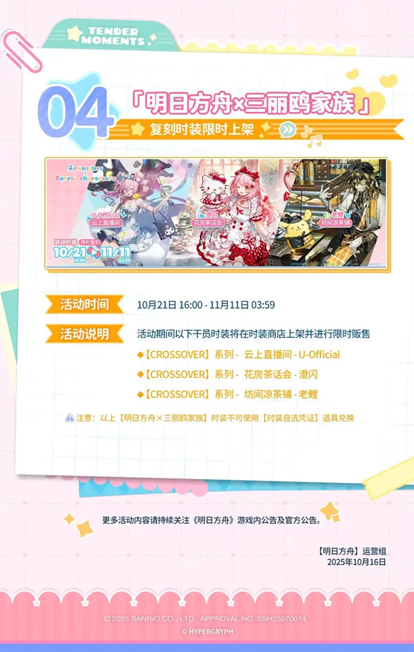 四、【明日方舟×三丽鸥家族】复刻时装限时上架