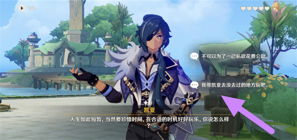 1、选择对话【我带凯亚去没去过的地方玩吧。】开启接下来的互动剧情。
