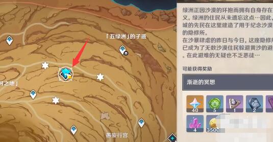 1、首先需要通过传送前往五绿洲之殿堂的位置,然后再进行后续探索。