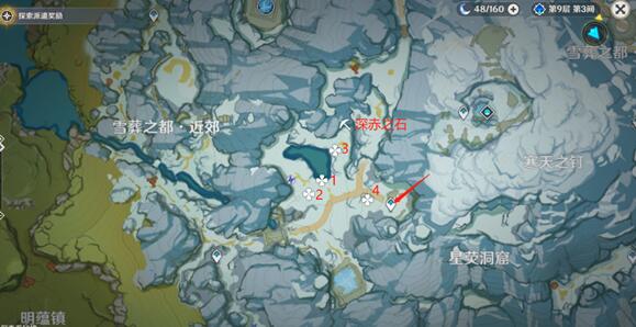 4、如图所示,以下是在龙脊雪山区域中勘测信标遗失的位置,以及对应的深赤之石位置。