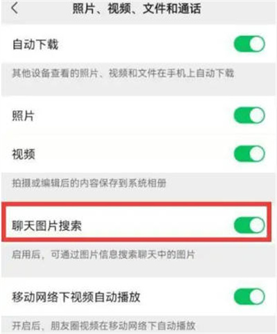 在页面中找到“聊天图片搜索”功能,点击右侧的开关滑块,开启这个功能就完成啦!
