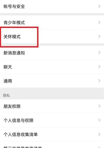 第2步:进入设置页面之后,找到并点击“关怀模式”这个功能选项。