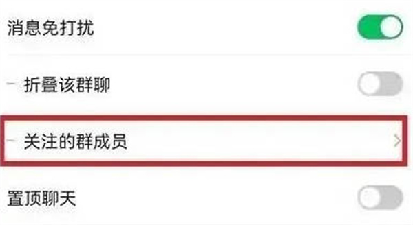 进入菜单页面后,找到“关注的群成员”这一项,点进去,然后选择你想特别关心的人,添加一下就完成啦!