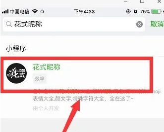 3、找到后点击进入,我们选择“花式昵称”这个小程序。
