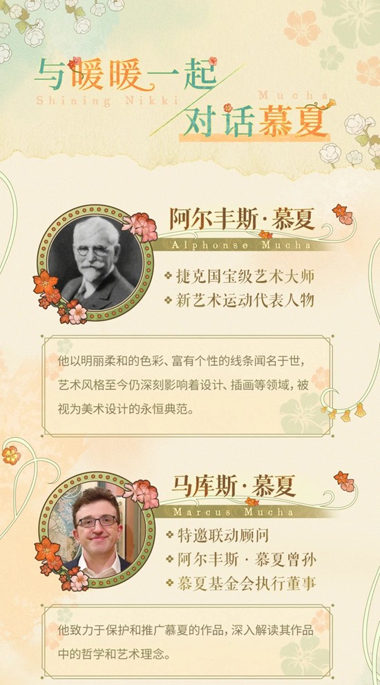 本次联动特别邀请顾问——阿尔丰斯·慕夏的曾孙、慕夏基金会执行董事马库斯·慕夏先生,为大家送上联动寄语,一同追溯这次合作的灵感与初心!