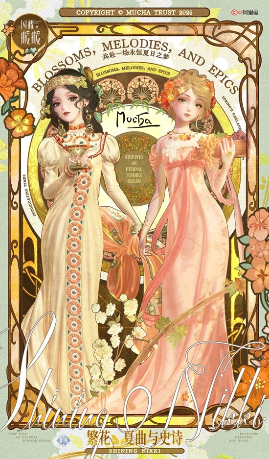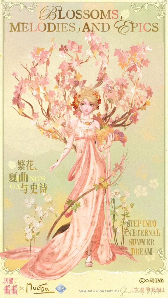 10月24日起,参与闪耀暖暖×阿尔丰斯·慕夏联动活动【繁花、夏曲与史诗】,即可获取联动非凡服饰【酩醉的时光】与【饮春的花冠】!