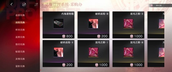 样本兑换:在深井副本中获取的材料,可以兑换角色专烙所需材料。建议优先兑换每月折扣的道具,先换金色,再换紫色,蓝色的材料可以暂缓兑换。