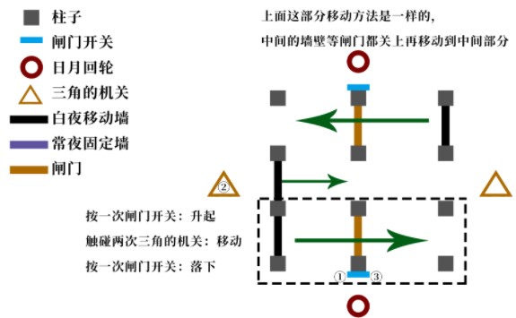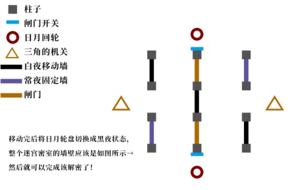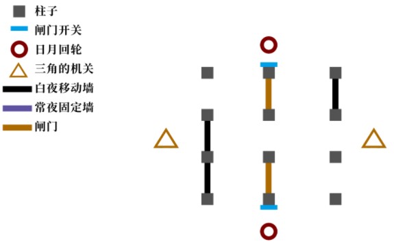 白夜状态下,密室迷宫保持原样,三角机关仅在白夜状态下可使用。
