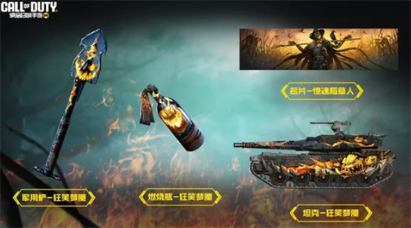 此外,活动还将推出军用铲-狂笑梦魇、燃烧瓶-狂笑梦魇、坦克-狂笑梦魇等多款限时道具,同时赠送名片-惊魂稻草人等个性化奖励,让你独一无二。