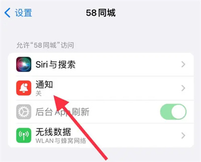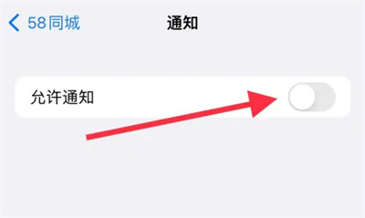 最后,在通知页面里找到“允许通知”,点击旁边的开关按钮,当开关变成彩色状态时,就表示消息通知已经成功开启,这样手机就能及时收到58同城的消息提醒了。