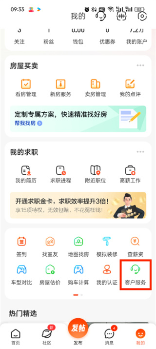 2、接着在我的页面中向下滑动,找到【客户服务】选项;