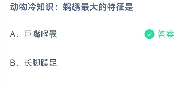 动物冷知识:鹈鹕最大的特征是?这是今天《支付宝》每日一题的问题,相信我们很多用户都很想知道这个问题的答案是什么?这么一个可以领取饲料的机会相信我们很多用户都不想错过,这里羊托游小编为你带来了2025《支付宝》11月7日每日一题最新答案介绍(1)的全部内容,喜欢的小伙伴欢迎点击进入看看吧。