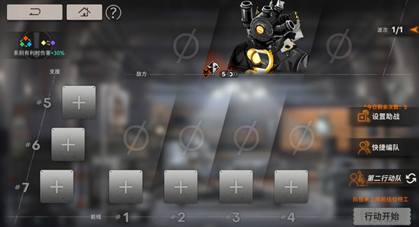 我们一共可以部署七位角色,其中前四位(1-4号)是出战角色,负责直接上场作战,释放各种技能去攻击敌人或者提供增益;