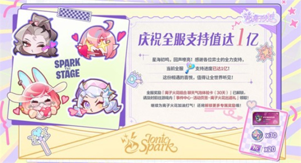 此外,全服奖励“离子火花组合聊天气泡体验卡(30天)”已顺利解锁,玩家可以前往游戏内【事件中心-活动页签-离子火花出道礼】领取。官方表示,随着活动持续推进,还将陆续解锁更多专属奖励,为玩家带来不断的惊喜。