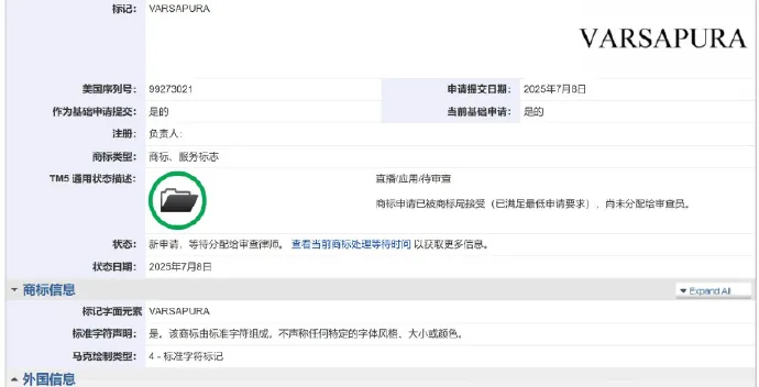 早在今年 7 月,米哈游旗下的全球发行机构 Cognosphere 就已经在海外申请了《Varsapura》的商标。