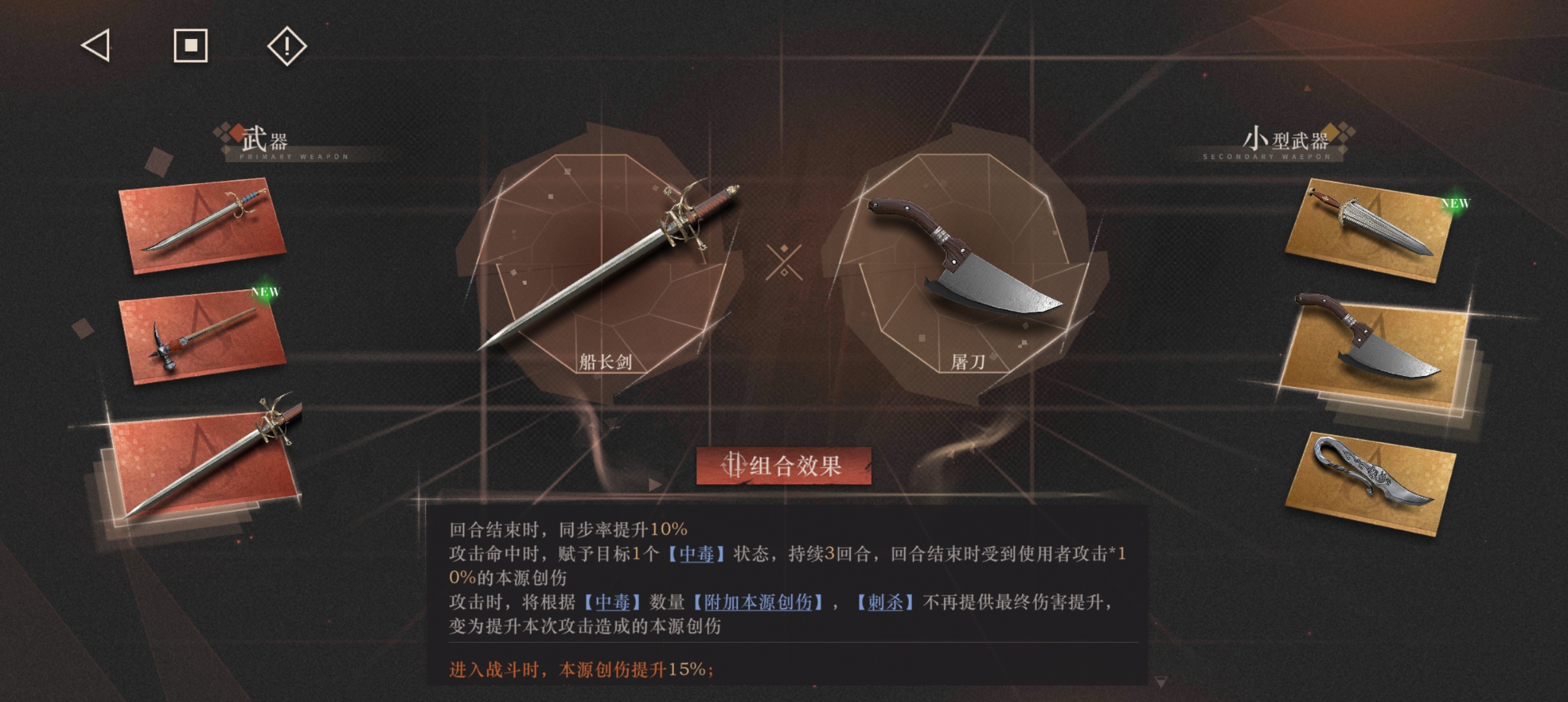 武器选择:主武器优先船长剑,副武器可用短刀清杂;屠刀适合单体目标,五指剑适合群体作战