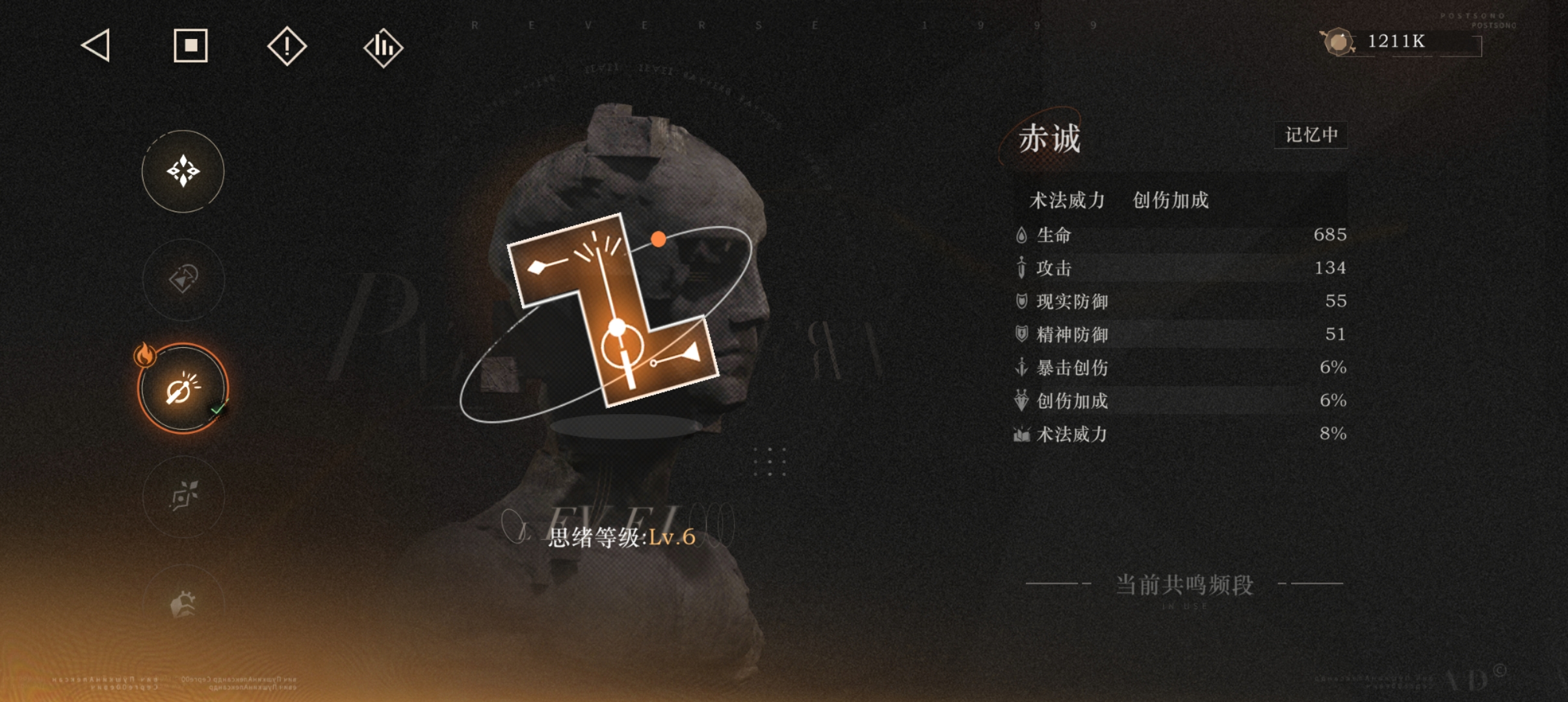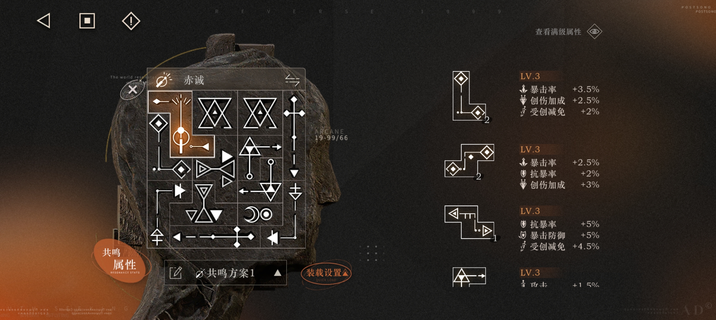 共鸣摆放方式如图所示,共鸣调频方面无脑选择赤诚即可。