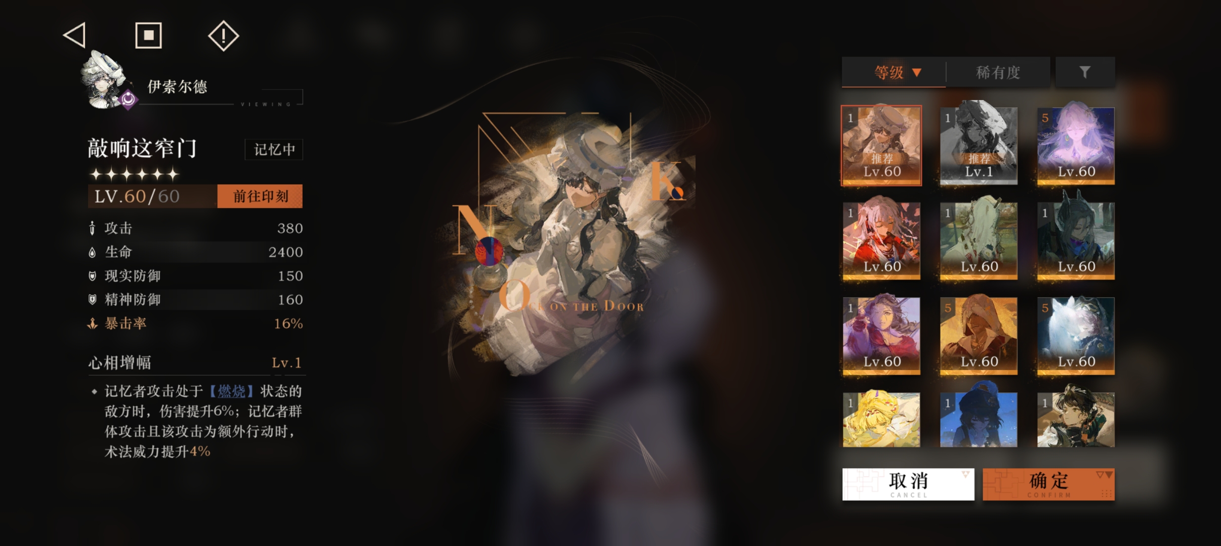无意识梦魇(前线观察室达到70级可免费领取)更偏向辅助和功能性,如果希望伊索尔德打出更高输出,可选择敲响这窄门。